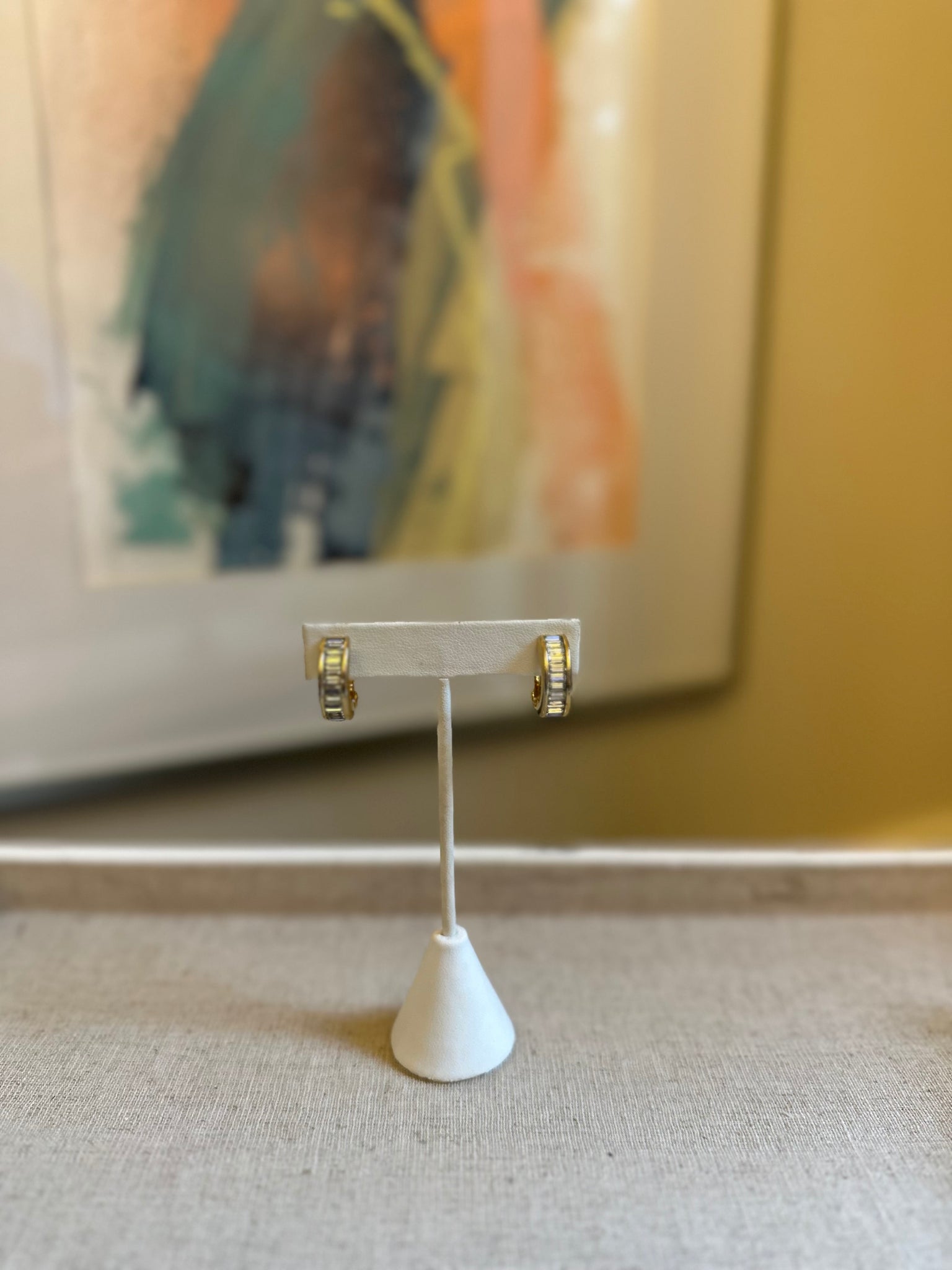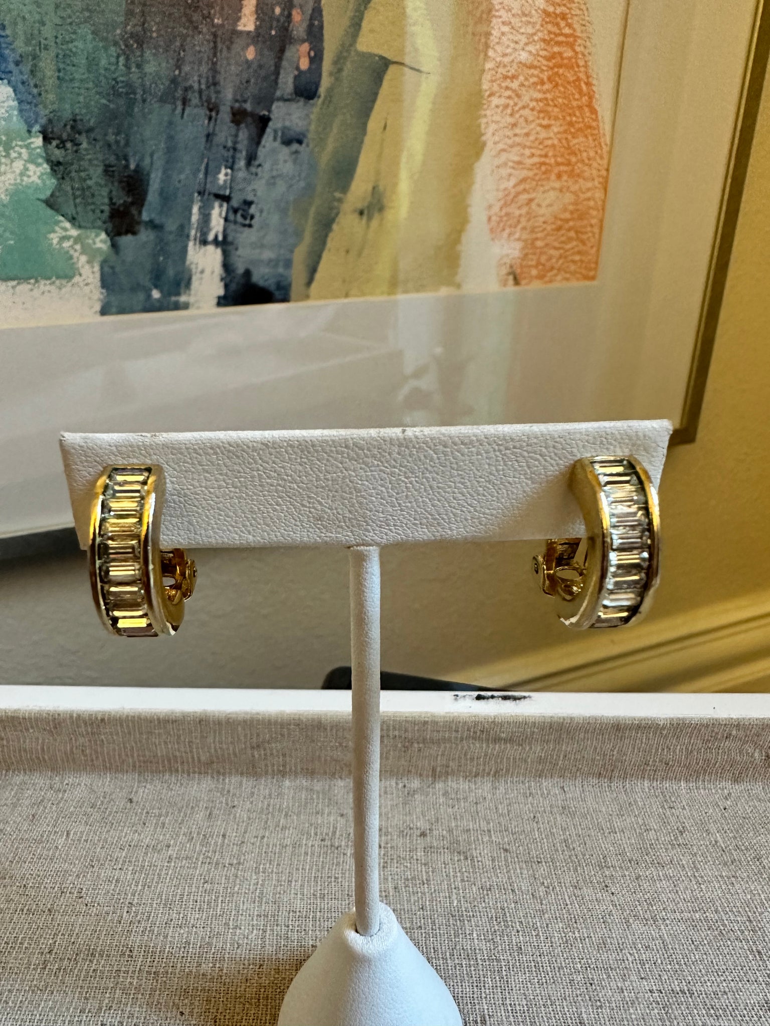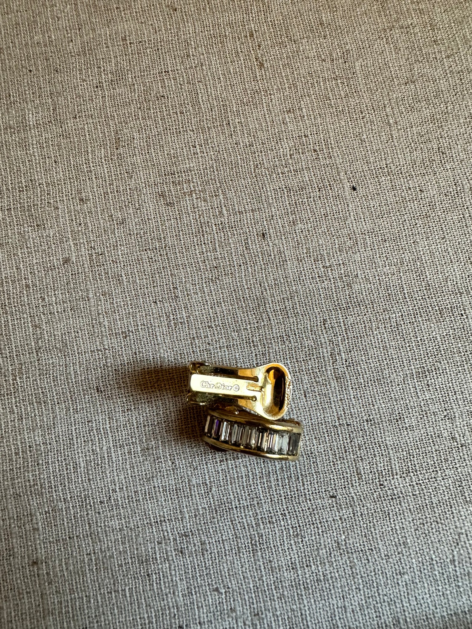 vintage Christian Dior gold-plated clip-on earrings with baguette crystals in very good vintage condition, may show slight signs of wear. Measure about 3/4”.