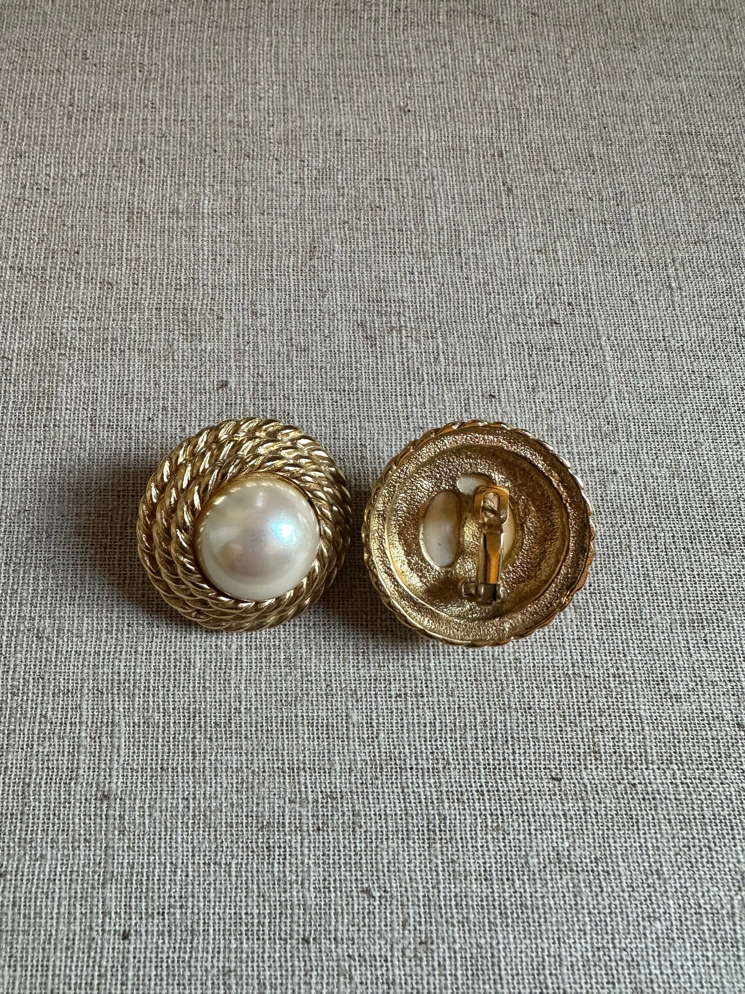 Vintage unsigned faux pearl and gold tone earrings. In good condition but may show slight signs of wear. Measure about 1 1/4” and are for pierced ears
