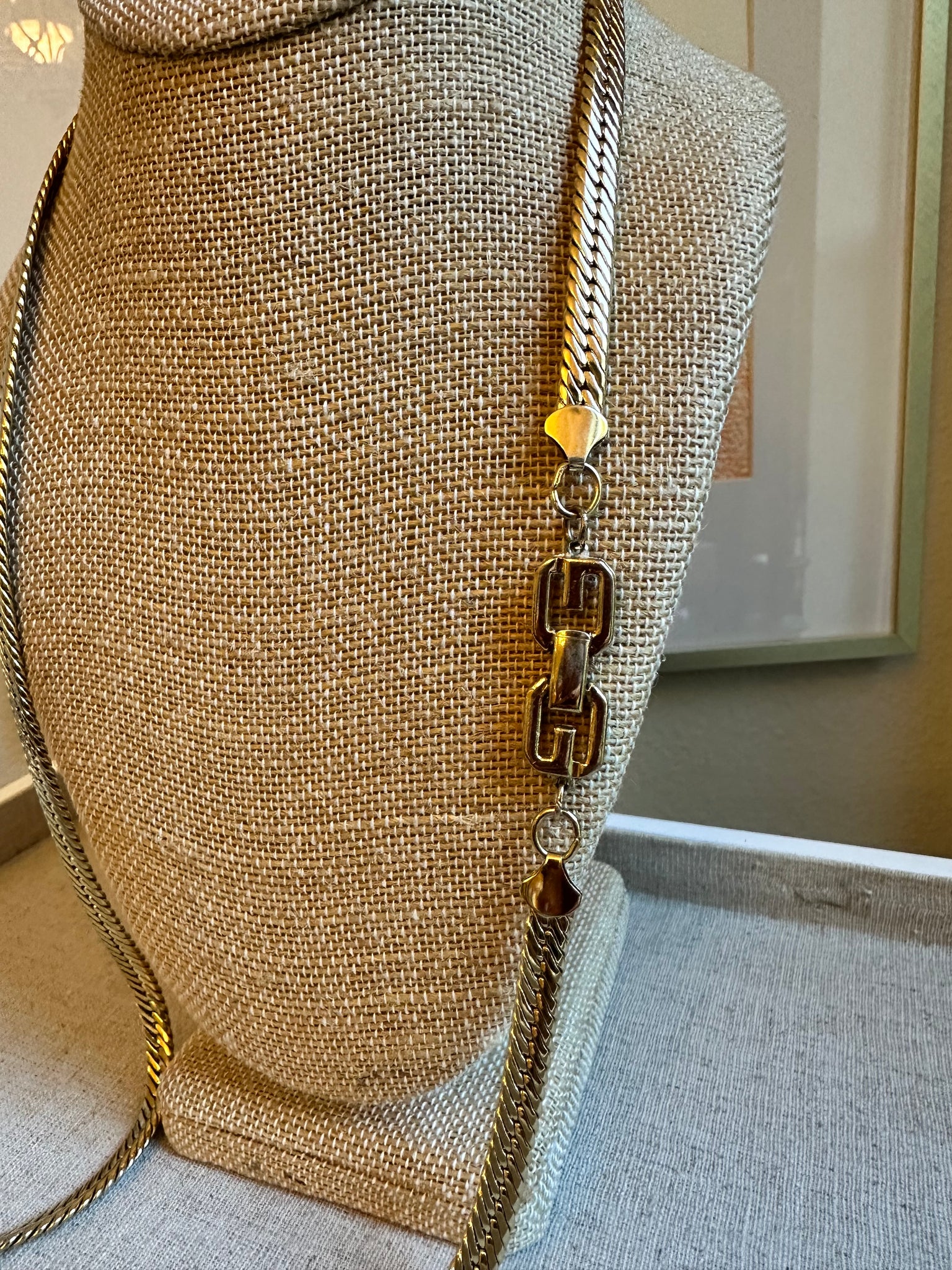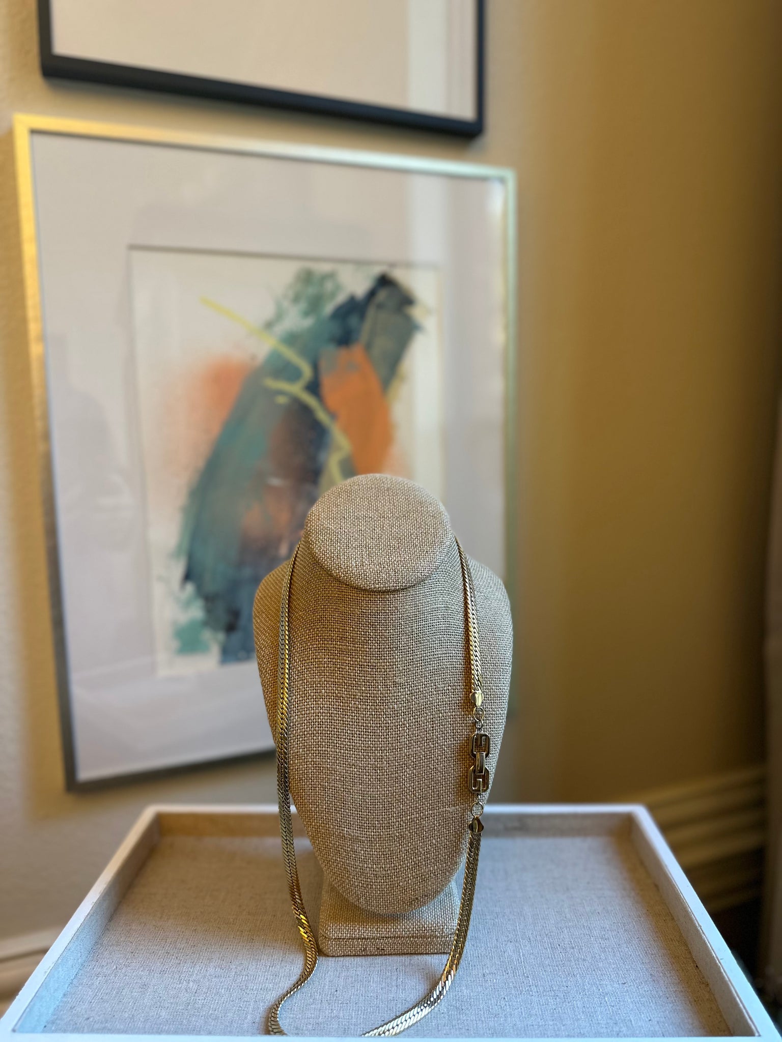 Vintage gold tone Givenchy necklace. Measures about 30” and is in good vintage condition, shows slight signs of wear.