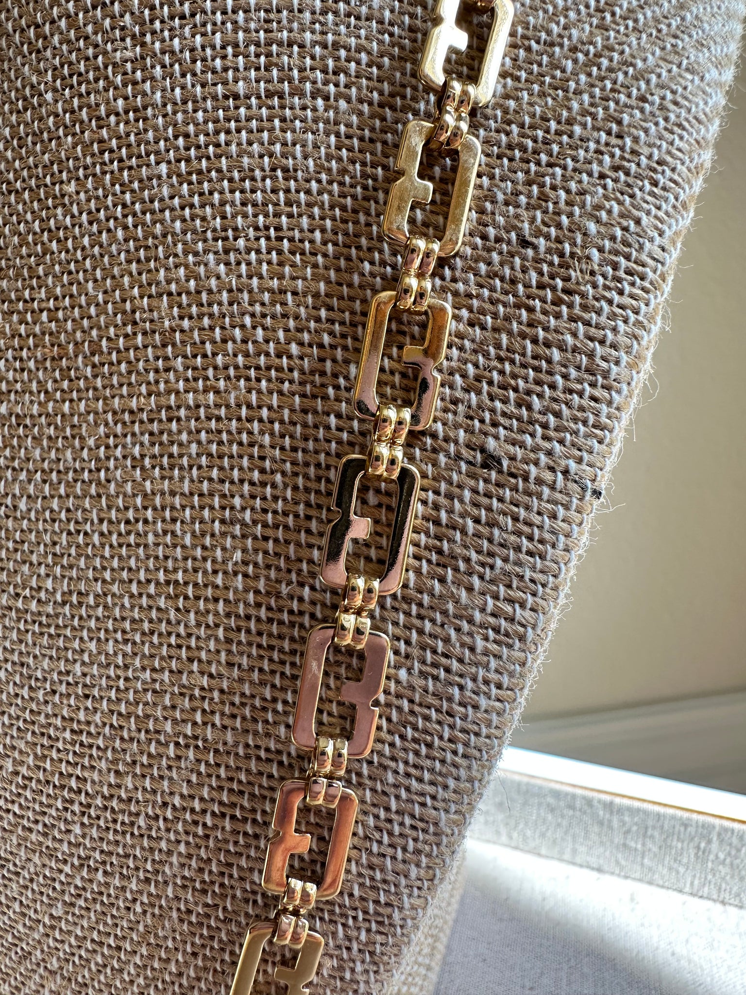 Vintage Givenchy G link necklace. It measures 24” and is in good vintage condition, may show slight signs of wear.
