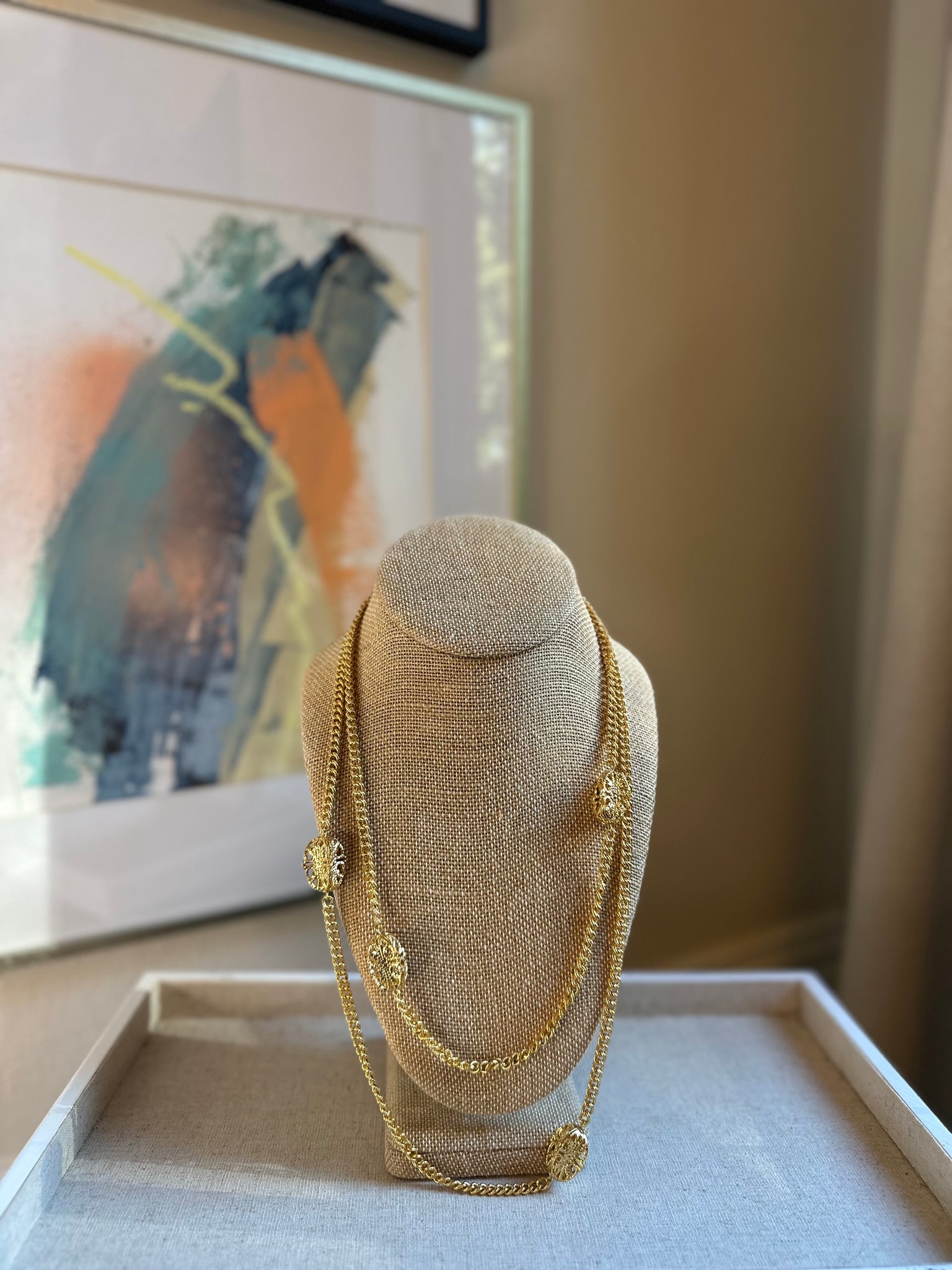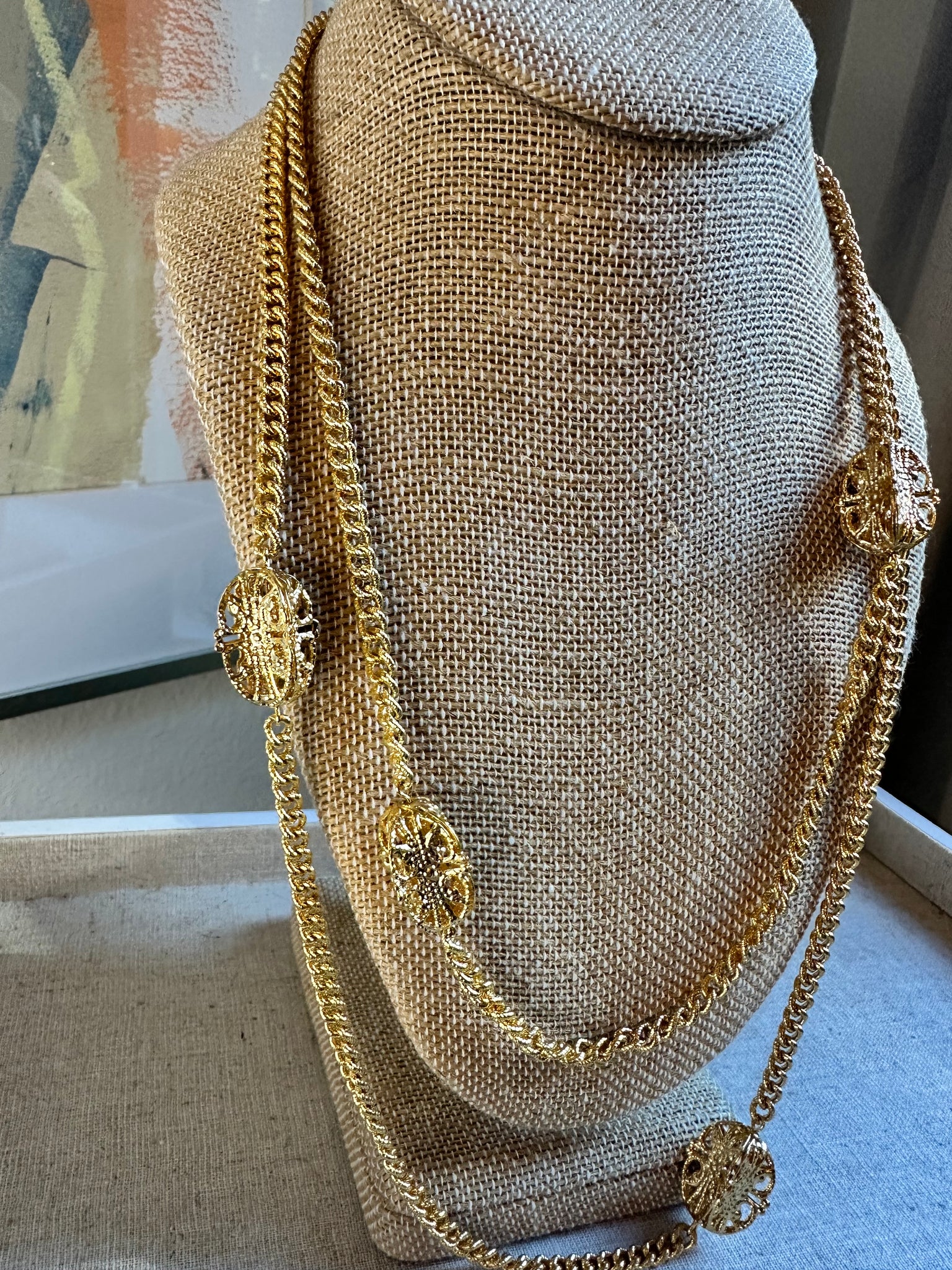 Vintage Kenneth Jay Lane necklace measuring almost 48” (shown doubled) in very good vintage condition, may show south signs of wear.