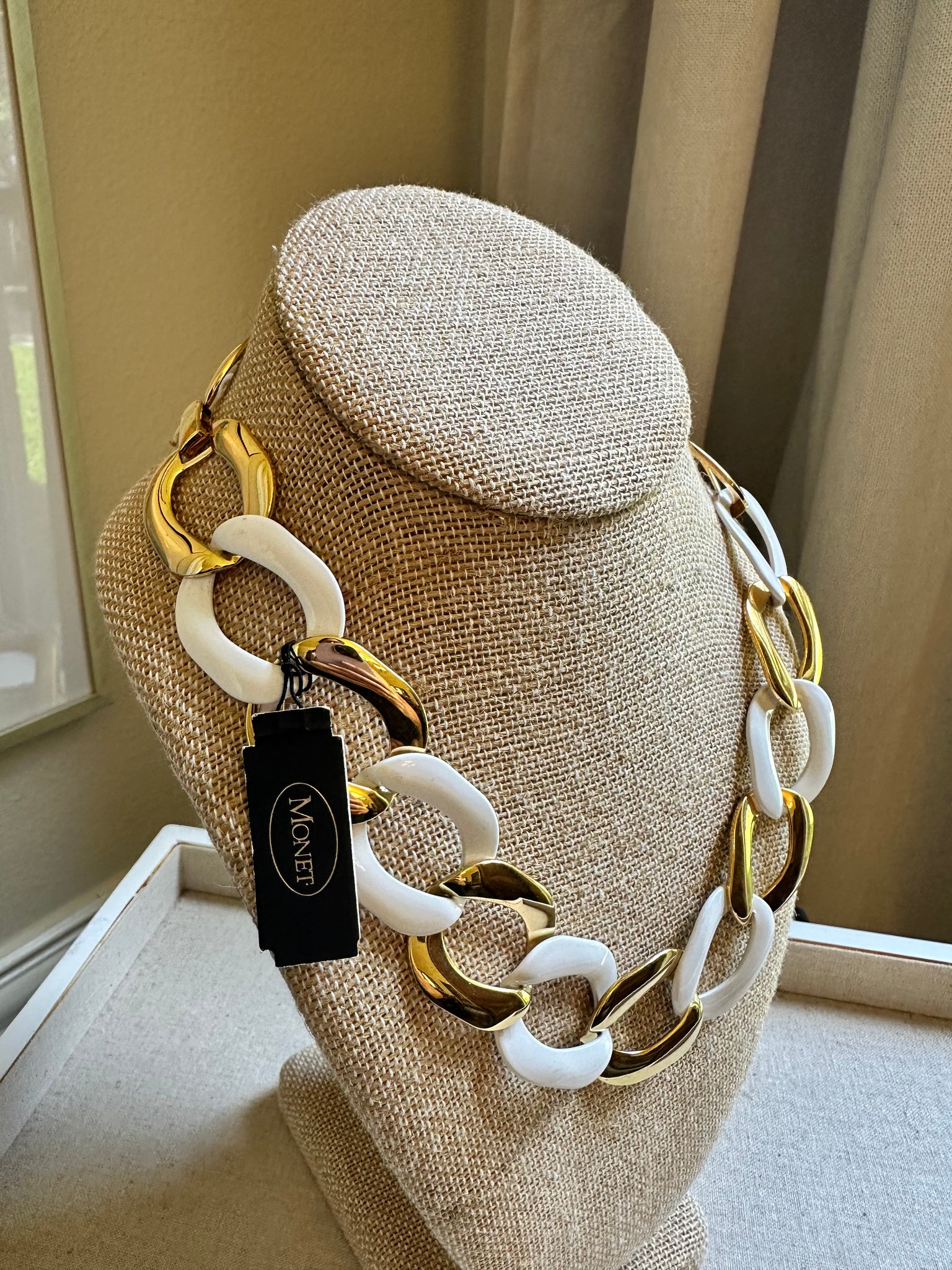 Vintage white and gold tone necklace with tags!!! It is in great vintage condition, may show slight signs of age. Measures about 19”