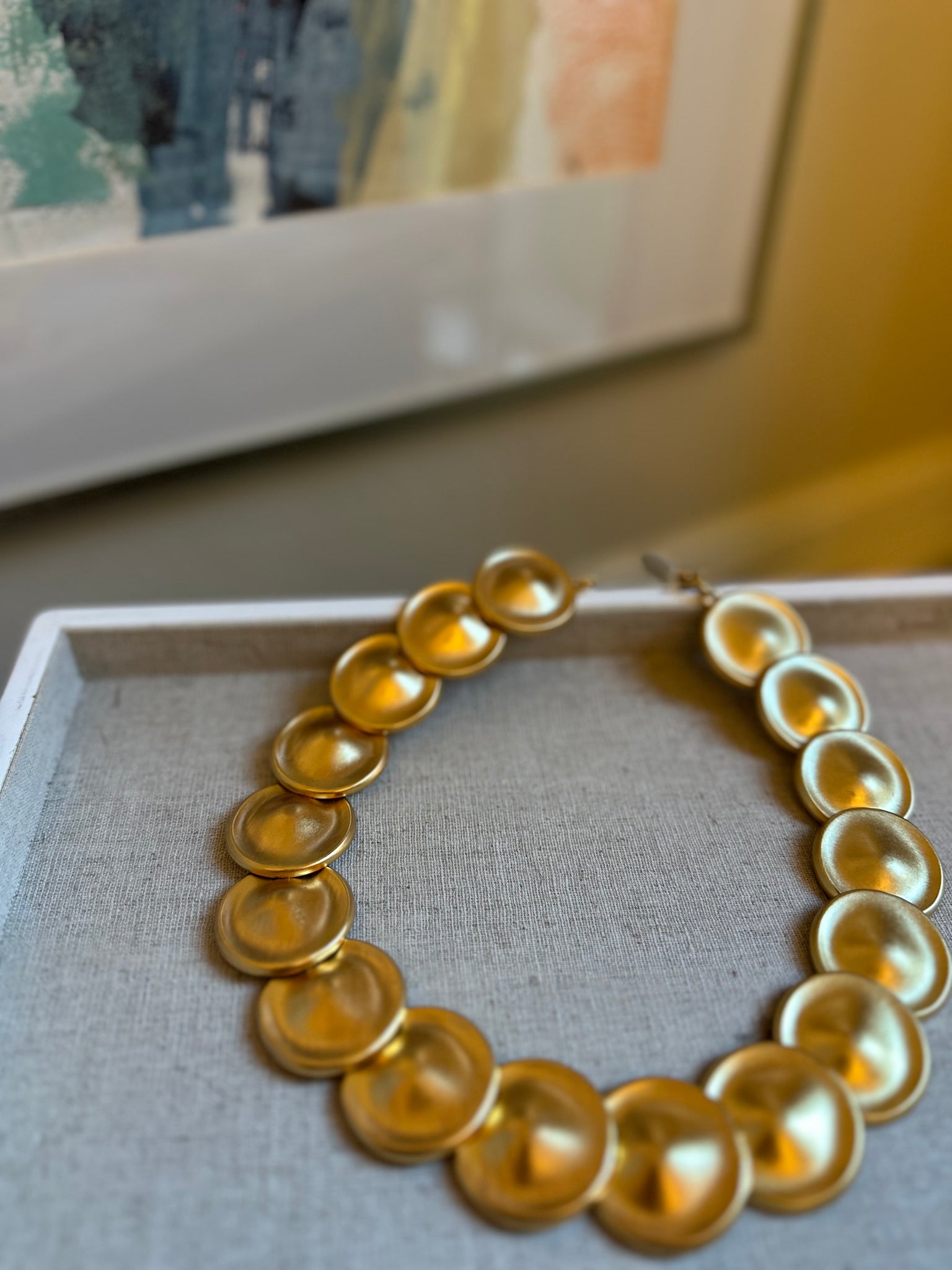Vintage matte gold tone Monet necklace. Measures around 17-18” It is in very good vintage condition, may shoes slight signs of wear.